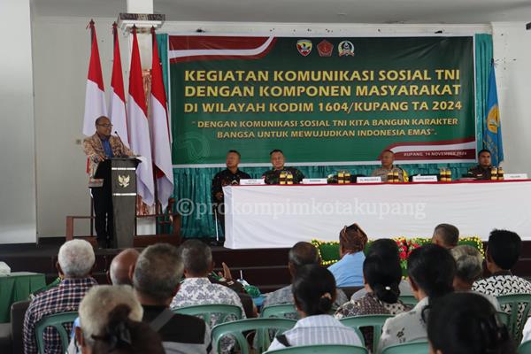 Pj. Wali Kota Kupang dalam sambutannya menyampaikan apresiasi dan penghargaan yang setinggi-tingginya kepada KODIM 1604 Kupang atas inisiatif menyelenggarakan kegiatan komunikasi sosial ini.