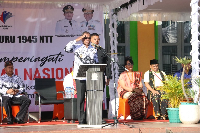 Wakil Gubernur NTT, Irjen Pol (Purn) Johni Asadoma saat membacakan sambutan Menteri Pendidikan Dasar dan Menengah RI, Abdul Mu’ti, mengatakan peringatan Hardiknas bukanlah hanya sekedar seremonial tahunan yang ditandai dengan upacara bendera dan berbagai ragam lomba.