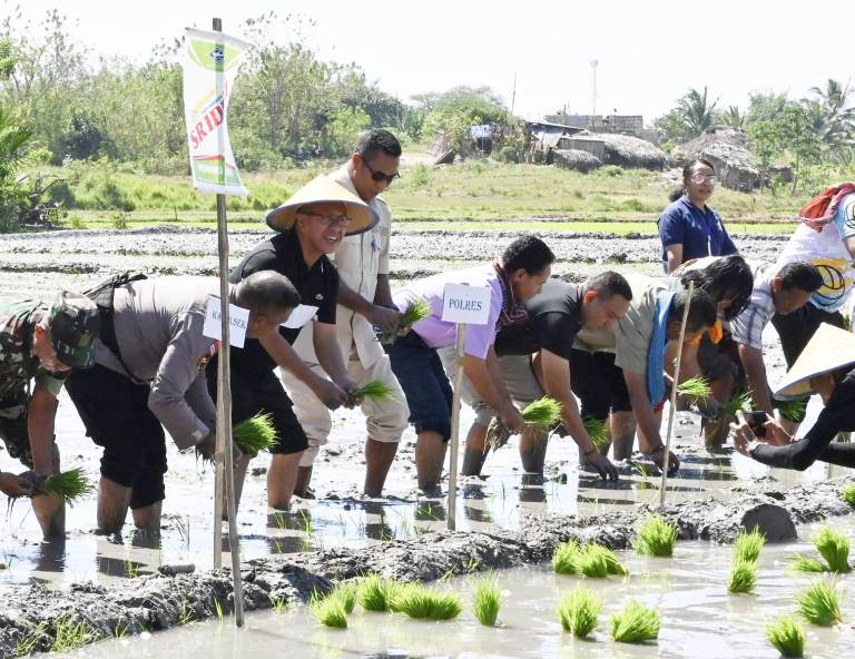 Oelamasi, swaratimor.co.id – Pemerintah Kabupaten Kupang dibawah pimpinan Bupati Yosef Lede dan Wakil Bupati Aurum O. Titu Eki, terus menggenjot produktifitas pertanian guna mencapai swasembada pangan seperti program Presiden RI, Prabowo Subianto. Berbagai inovasi dan terobosan terus ditingkatkan dengan melibatkan berbagai pihak, agar produksi pertanian di Kabupaten Kupang meningkat. Seperti yang dilakukan di Kelurahan Babau, Kecamatan Kupang Timur, di lahan milik kelompok tani Family Lifubatu akhir pekan yang lalu, dimana dengan menggandeng PT. Bisi Internasional dan LSM Wahan Visi Indonesia (WVI), dan juga memaksimalkan bantuan traktor yang sudah diterima kelompok tani Family Lifubatu, Bupati Kupang, Yosef Lede melakukan penanaman perdana padi periode Musim Tanam II (MT II) menggunakan bibit unggul jenis padi hibrida Sri Dewi.