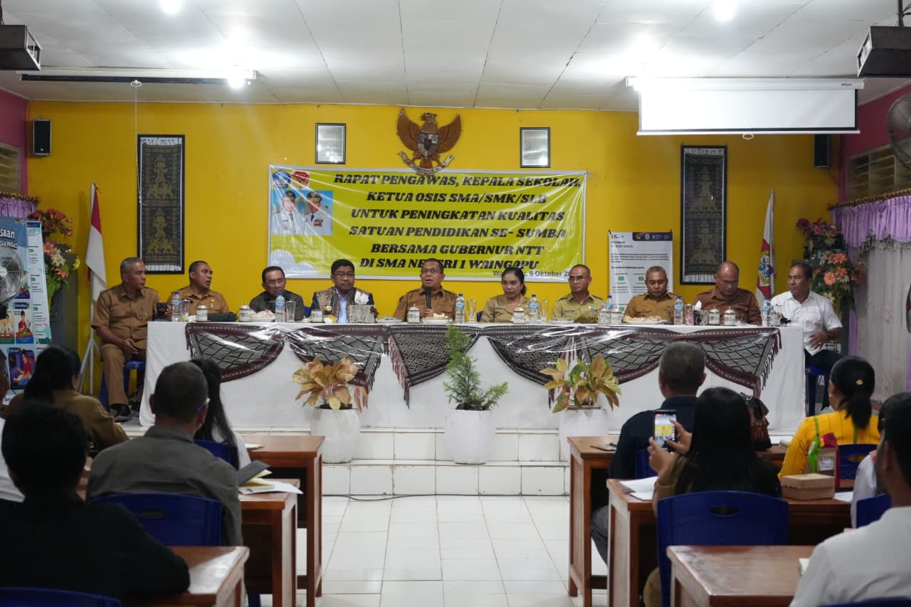 Waingapu, swaratimor.co.id – Bertempat di SMA Negeri 1 Waingapu – Sumba Timur pada Senin (6/10/2025) sore hingga malam, Gubernur NTT, Emanuel Melkiades Laka Lena menggelar pertemuan bersama para Koordinator Pengawas, Para Kepala Sekolah, perwakilan Guru dan para Ketua OSIS SMA/SMK/SLB se Pulau Sumba.
