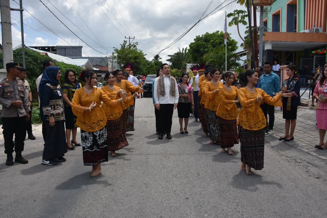 Wali Kota Kupang, dr. Christian Widodo disambut tarian saat tiba di Puskesmas Sikumana.(Ist)